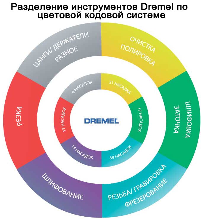 Цветовая кодовая система Dremel состоит из шести разделов.